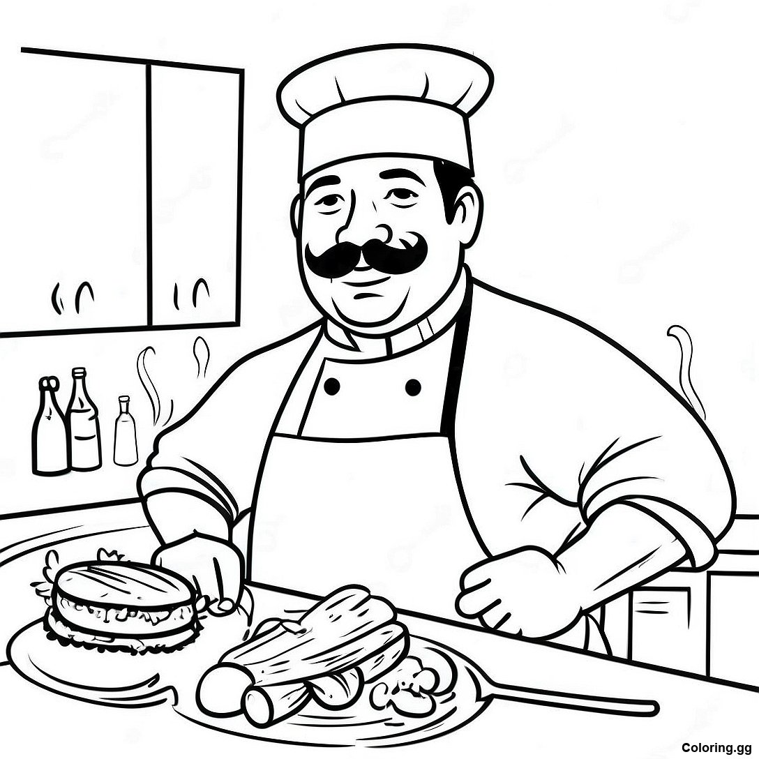 بی بی کیو شیف کھانا پکاتے ہوئے رنگ بھرنے والا صفحہ