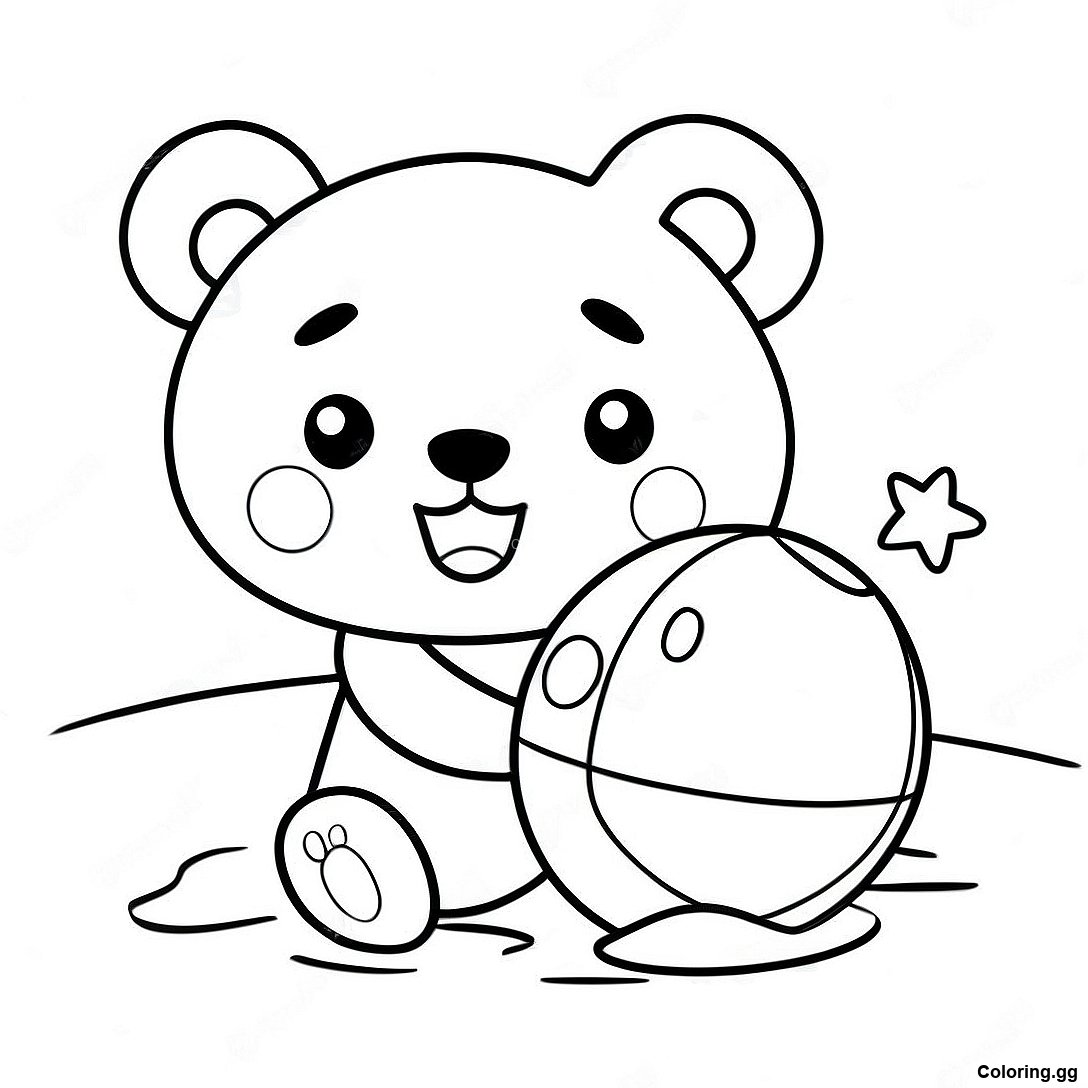 بیچ بال کے ساتھ کھیلتا ہوا ریلکما رنگ بھرنے والا صفحہ