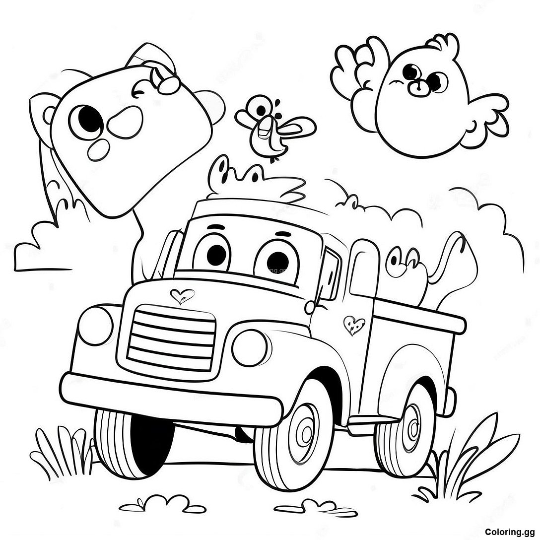 چھوٹا نیلا ٹرک خوش جانوروں کے ساتھ کا رنگ بھرنے والا صفحہ کا پرنٹ ایبل پی ڈی ایف ڈاؤن لوڈ کریں