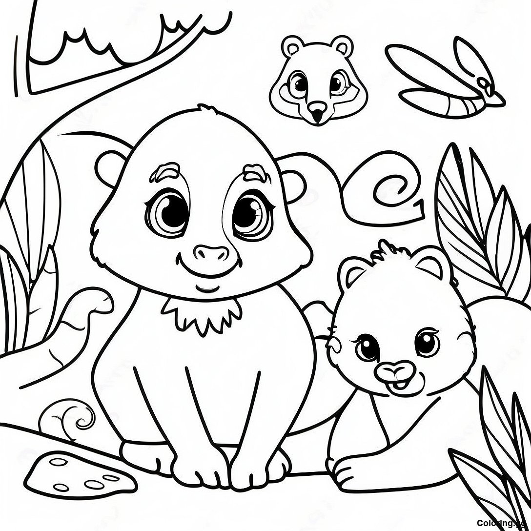 چمکدار بارش کے جنگل کے جانوروں کا رنگ بھرنے والا صفحہ