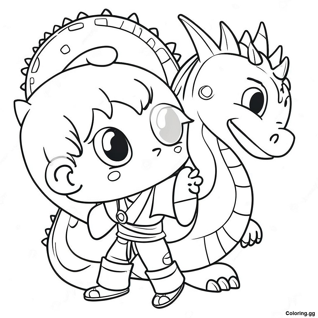 ڈریگن ساتھی کے ساتھ اینیمی لڑکا رنگ بھرنے والا صفحہ