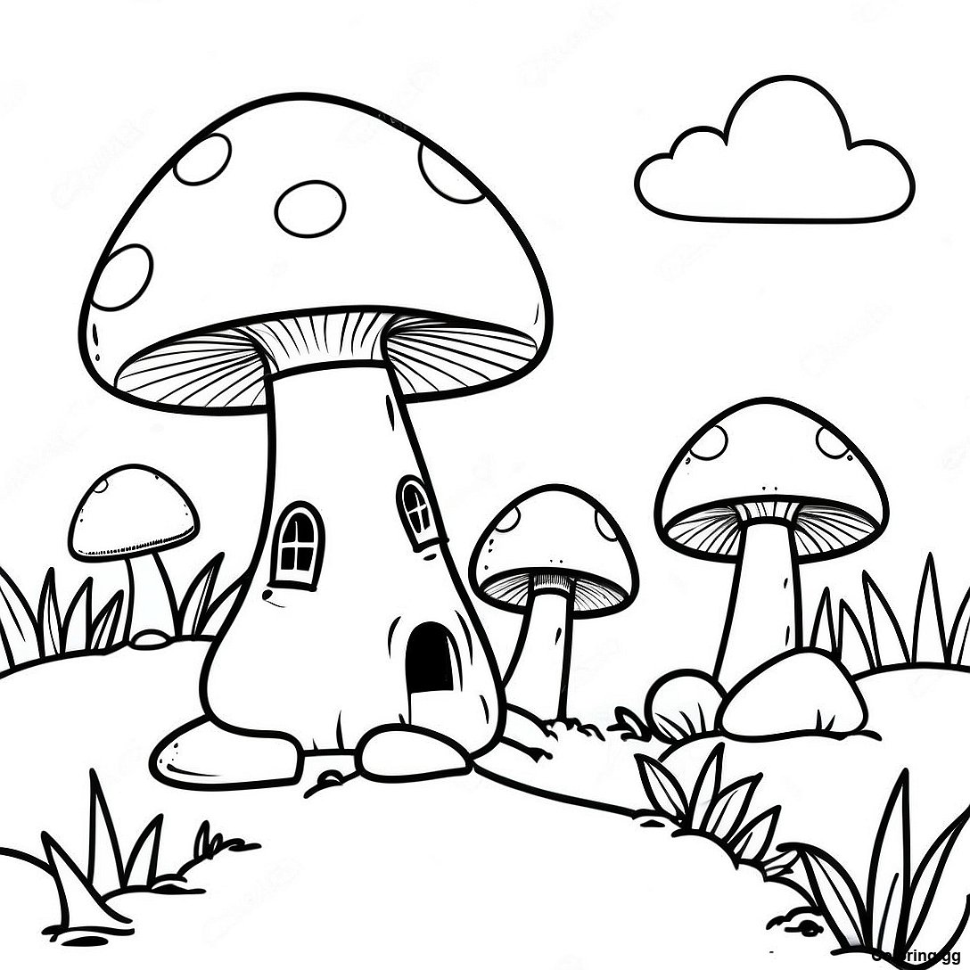 فینٹسی مشروم گاؤں رنگ بھرنے والا صفحہ
