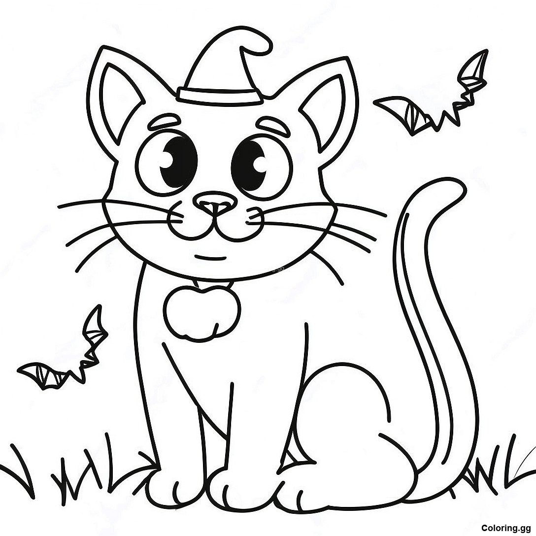 کھیلنے والی ہالووین کی کالی بلی رنگ بھرنے والا صفحہ