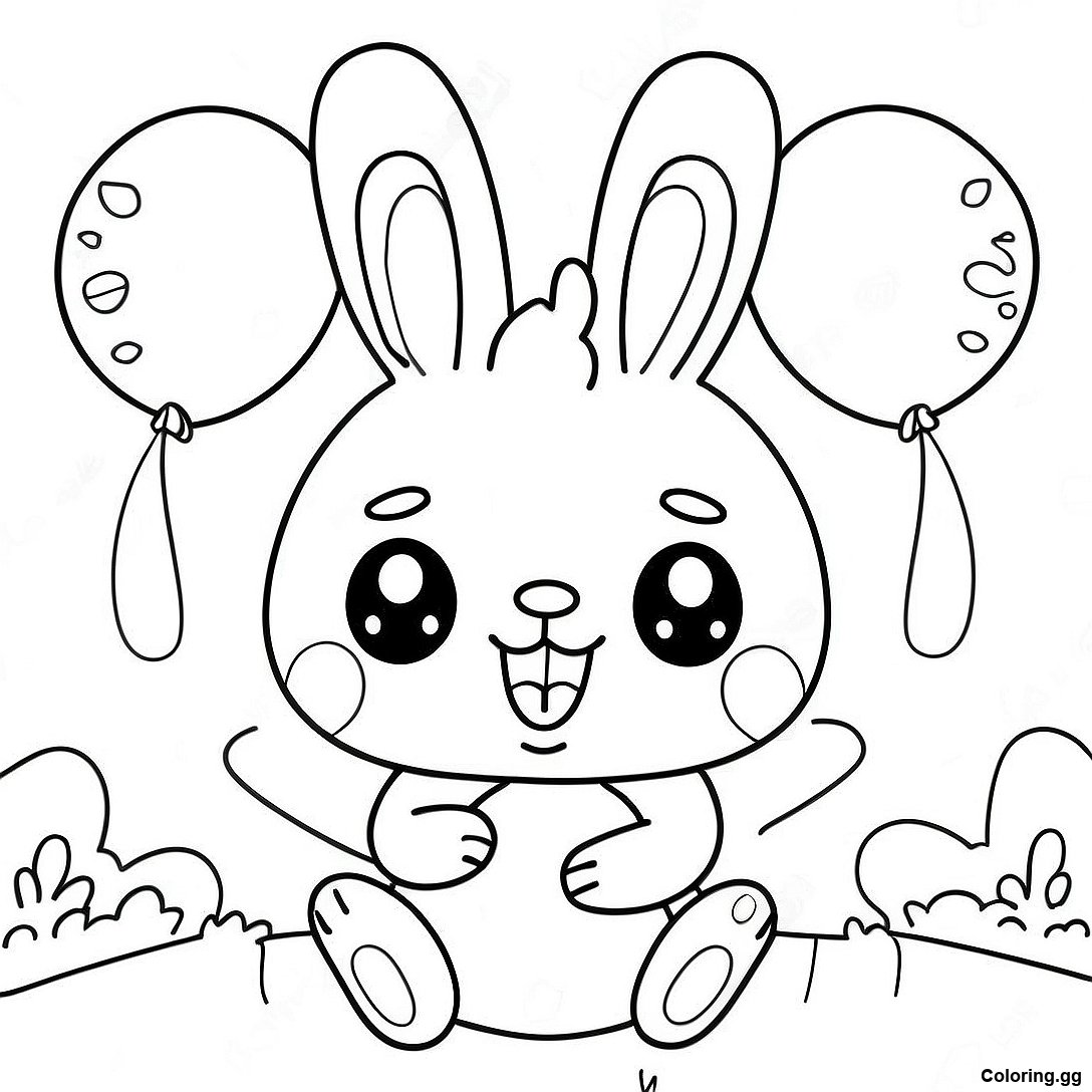 خوش کیوائی خرگوش غباروں کے ساتھ رنگ بھرنے والا صفحہ