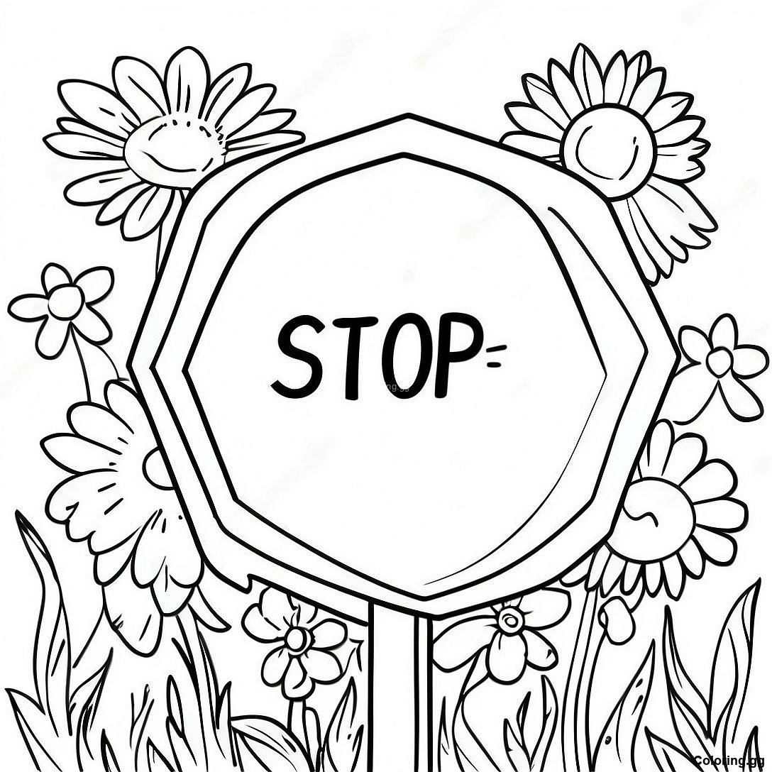 پھولوں سے گھرا ہوا روکنے کا نشان رنگ بھرنے والا صفحہ کا پرنٹ ایبل پی ڈی ایف ڈاؤن لوڈ کریں