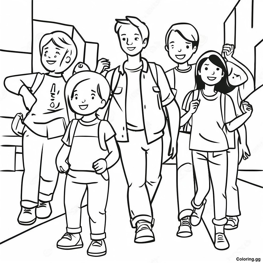 اسکول میں مہم جو طلباء رنگ بھرنے والا صفحہ کا پرنٹ ایبل پی ڈی ایف ڈاؤن لوڈ کریں