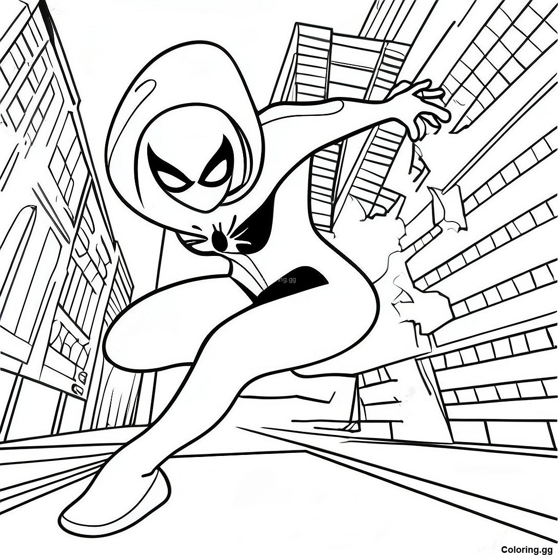 سیاہ سوٹ اسپائیڈر مین شہر میں جھولتے ہوئے رنگ بھرنے والا صفحہ
