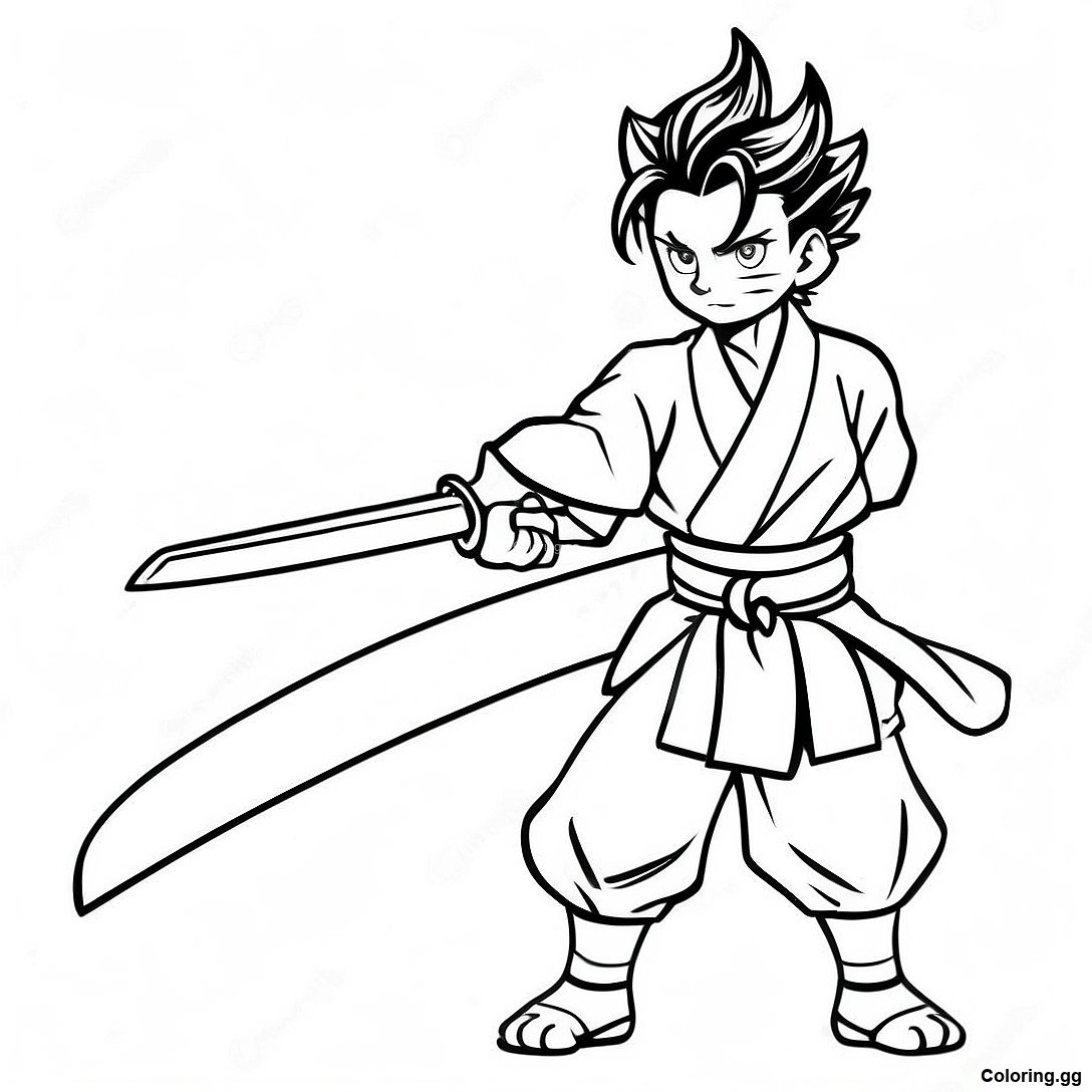 تانجیرو نچیرن تلوار پکڑے ہوئے رنگ بھرنے والا صفحہ